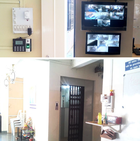 Secondly because it is situated in a very safe, well guarded and cultured place with caring seniors. CCTV Cameras are fitted for security purpose and Biometric System is used for attendance and to restrict unauthorized access in the premises.